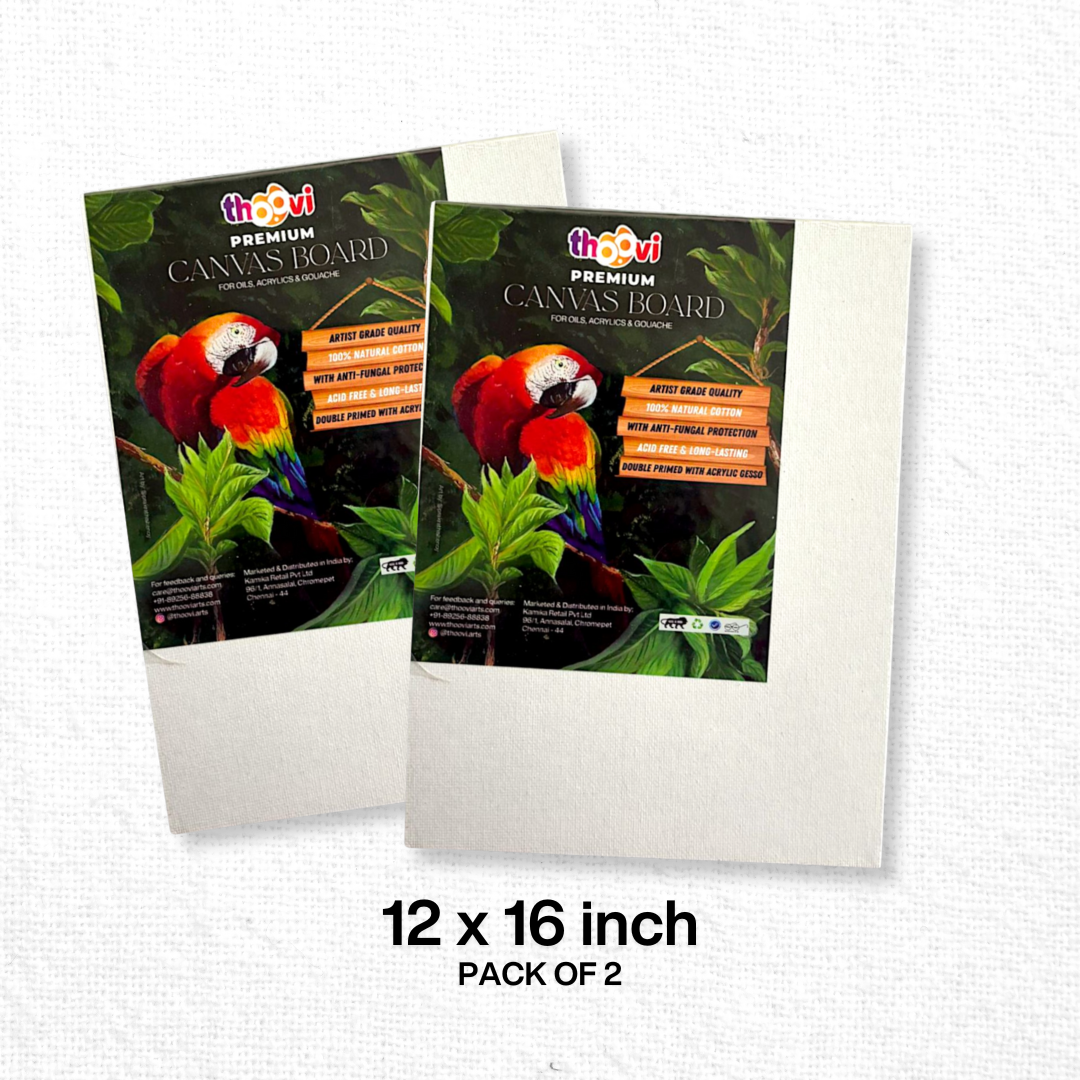 Thoovi – Premium – White Canvas Board for Painting I Suitable for Acrylic Paints, Oil Paints & Gouache Paints – 12 x 16 inch (Single or Pack of 2)