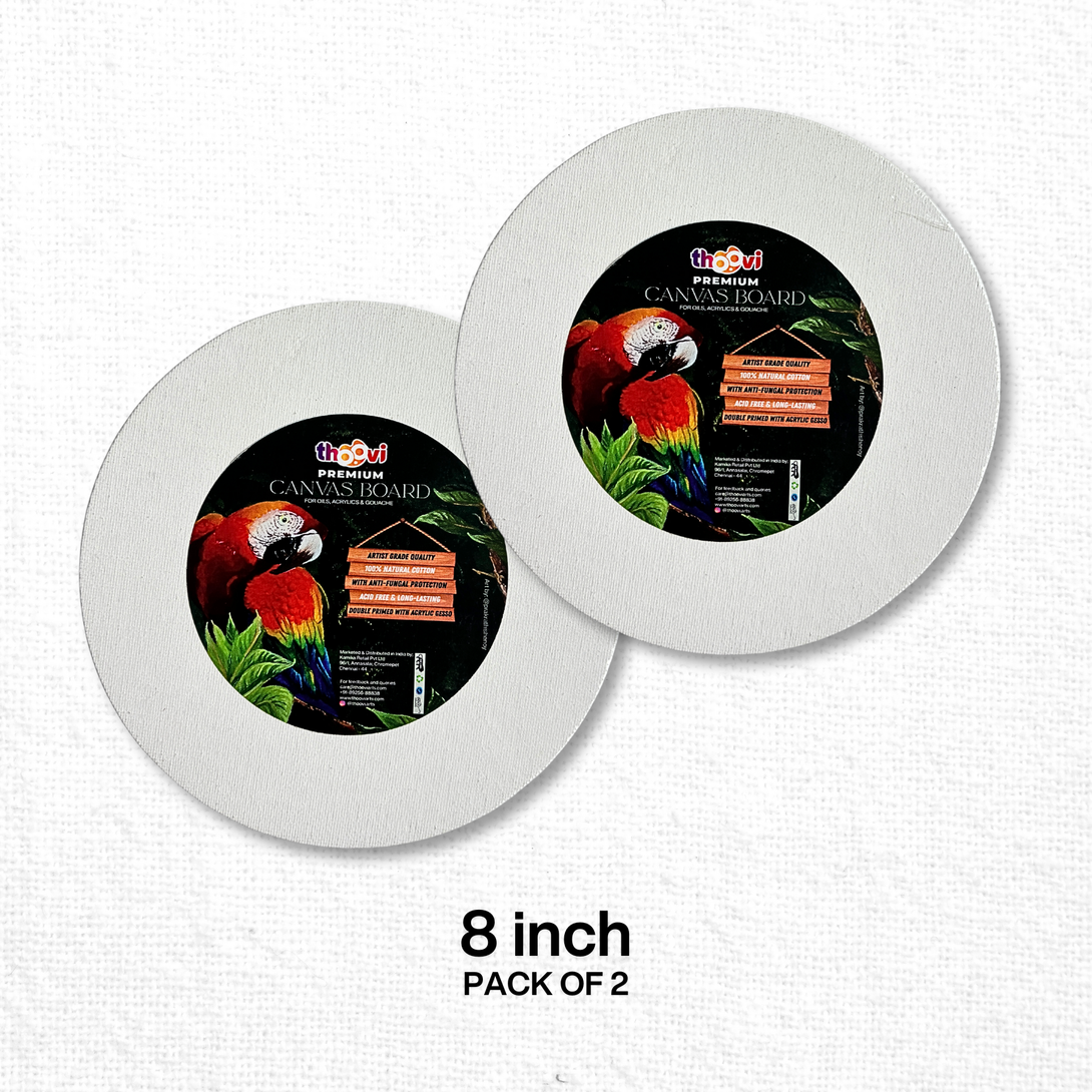 Thoovi – Premium – White Round Canvas Panel for Painting I Suitable for Acrylic Paints, Oil Paints & Gouache Paints – 8 inch (Single or Pack of 2)