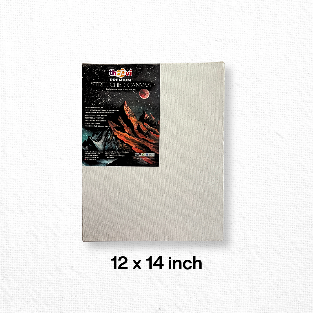 Thoovi – Premium – White Stretched Canvas for Painting I Suitable for Acrylic Paints, Oil Paints & Gouache Paints – 12 x 14 ( Single pc)