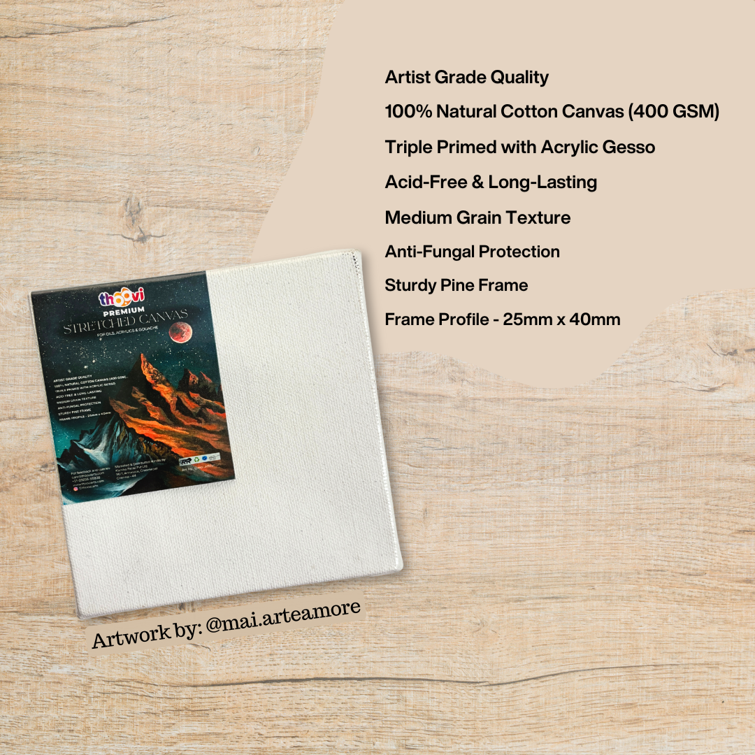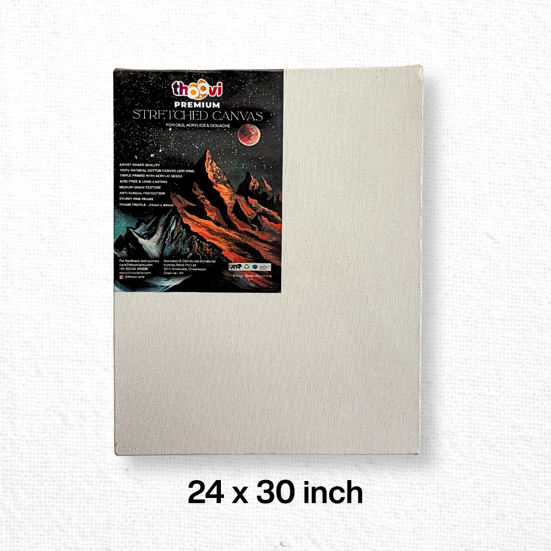 Thoovi – Premium – White Stretched Canvas for Painting I Suitable for Acrylic Paints, Oil Paints & Gouache Paints – 24 x 30 inch (Single pc)