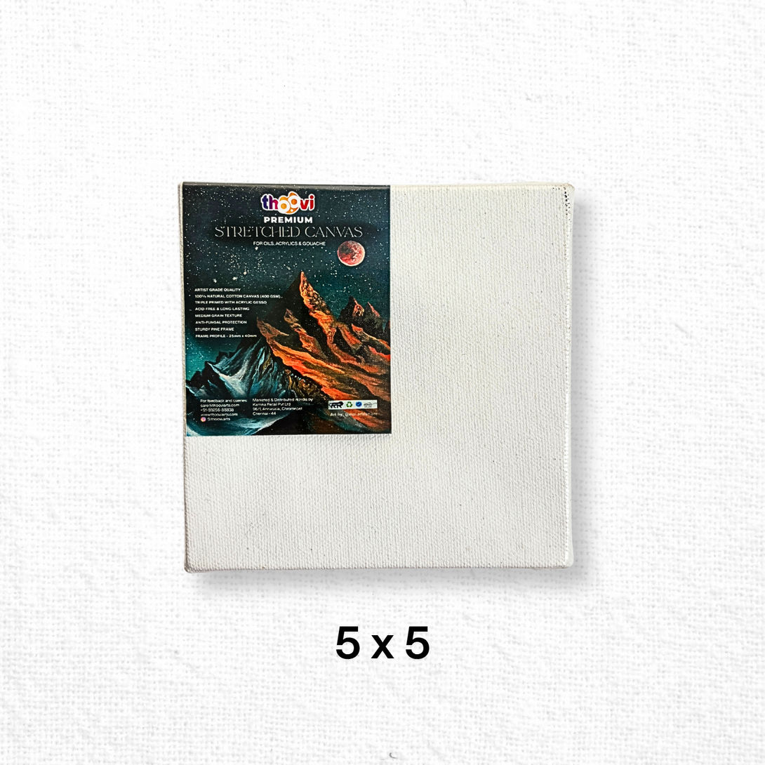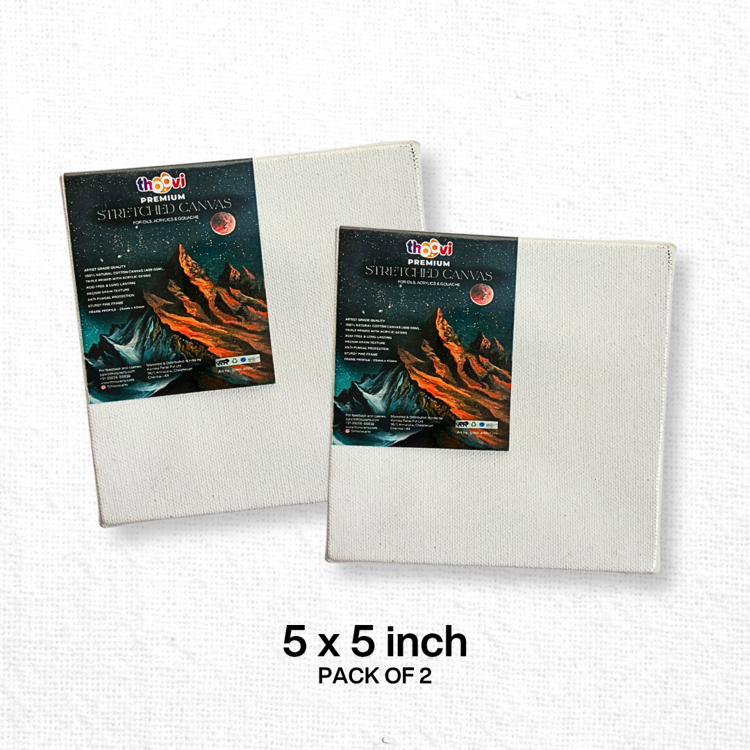 Thoovi – Premium – White Stretched Canvas for Painting I Suitable for Acrylic Paints, Oil Paints & Gouache Paints – 5 x 5 inch (Single or Pack of 2)