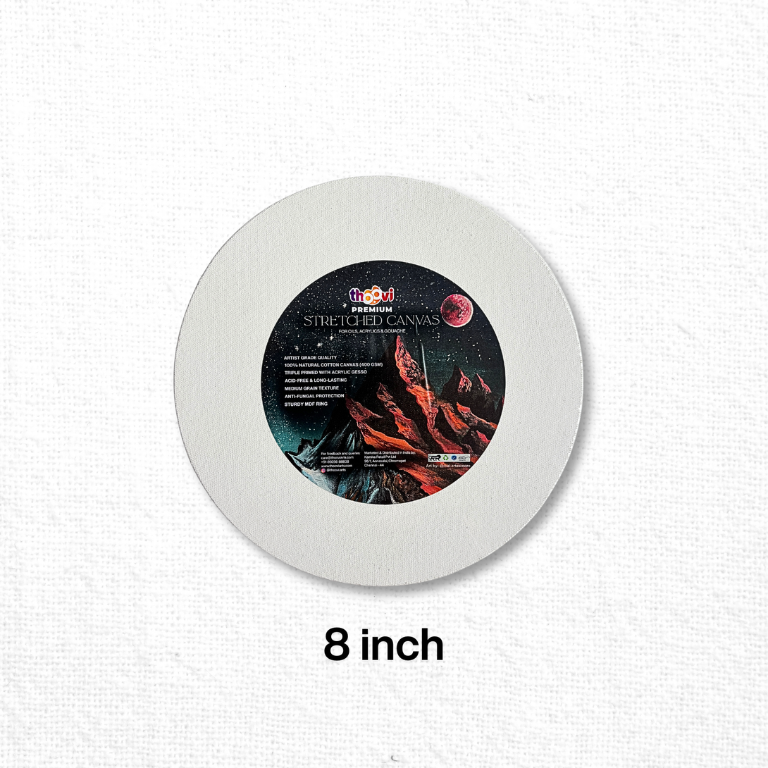Thoovi – Premium – White Stretched Round Canvas for Painting I Suitable for Acrylic Paints, Oil Paints & Gouache Paints – 8 inch (Single)